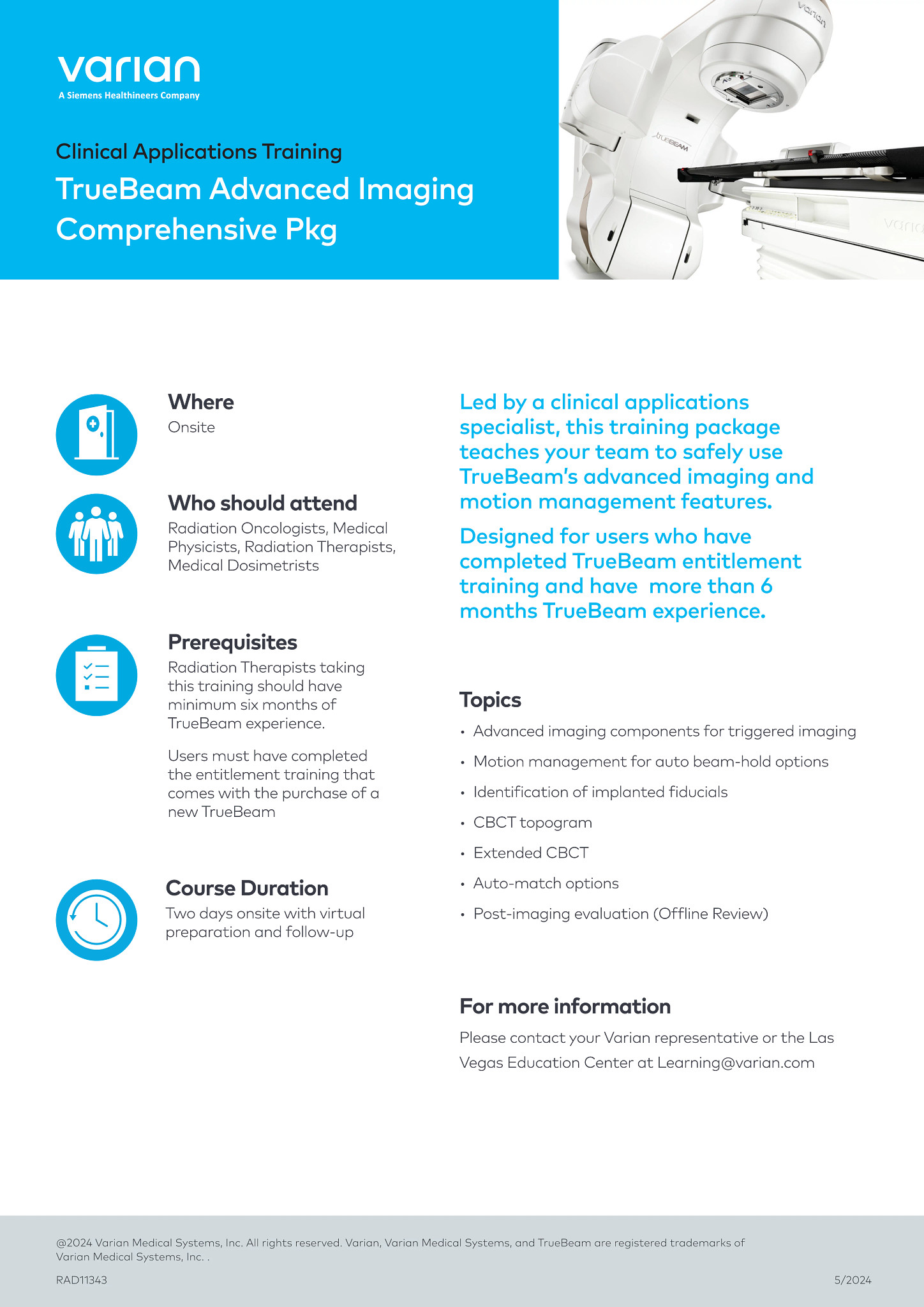Designed for users who have completed TrueBeam entitlement training and have more than 6 months TrueBeam experience.