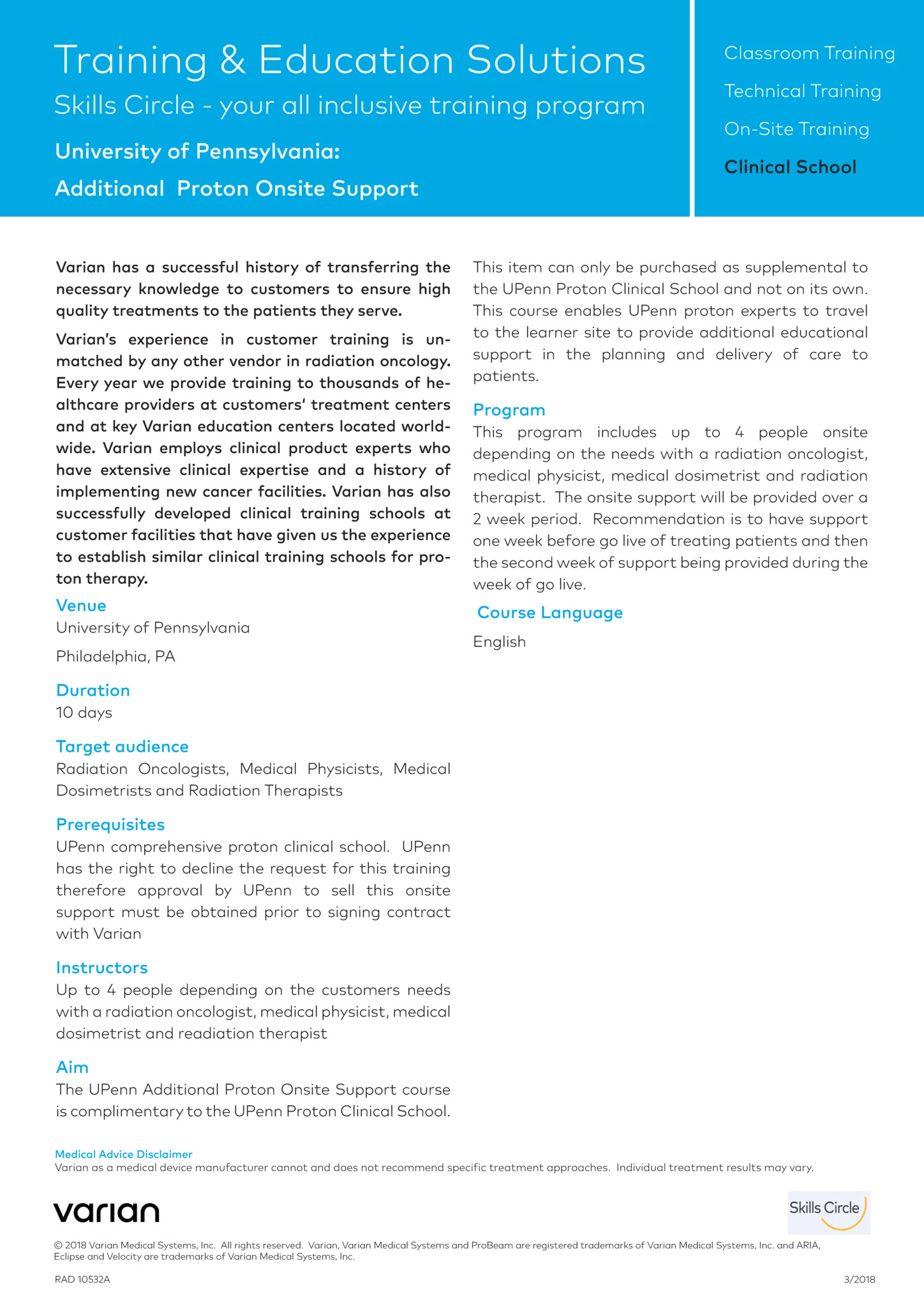 week of go-live. Please email protonclinicalschool@varian.com for scheduling information.",