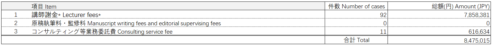 自社医療機器の適正使用等に関する情報提供のための講演や原稿執筆、コンサルティング等業務委託に関する費用が含まれます。