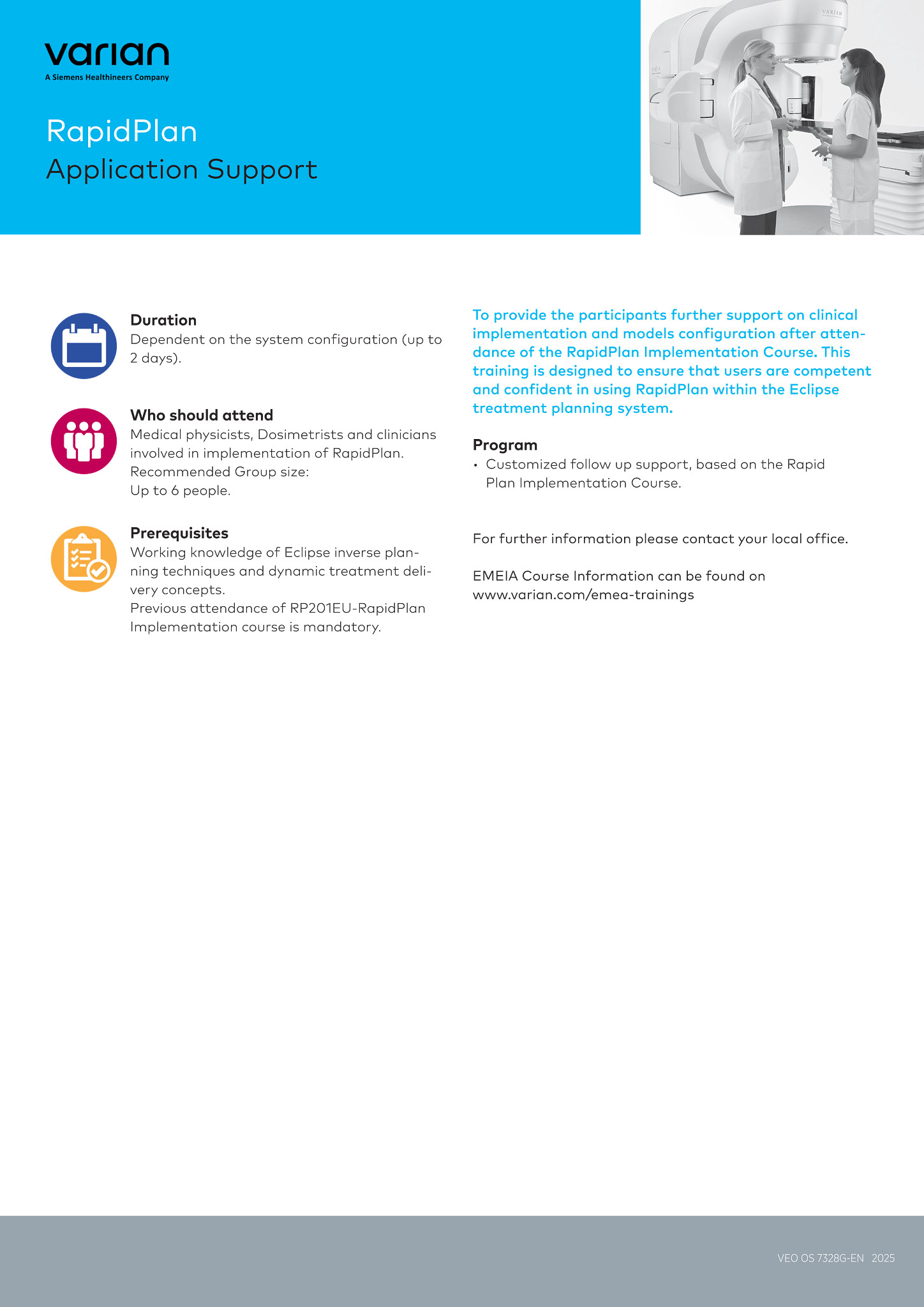 "recommendedFor": "Medical physicists, Dosimetrists and clinicians involved in implementation of RapidPlan. Recommended Group size: Up to 6 people.",