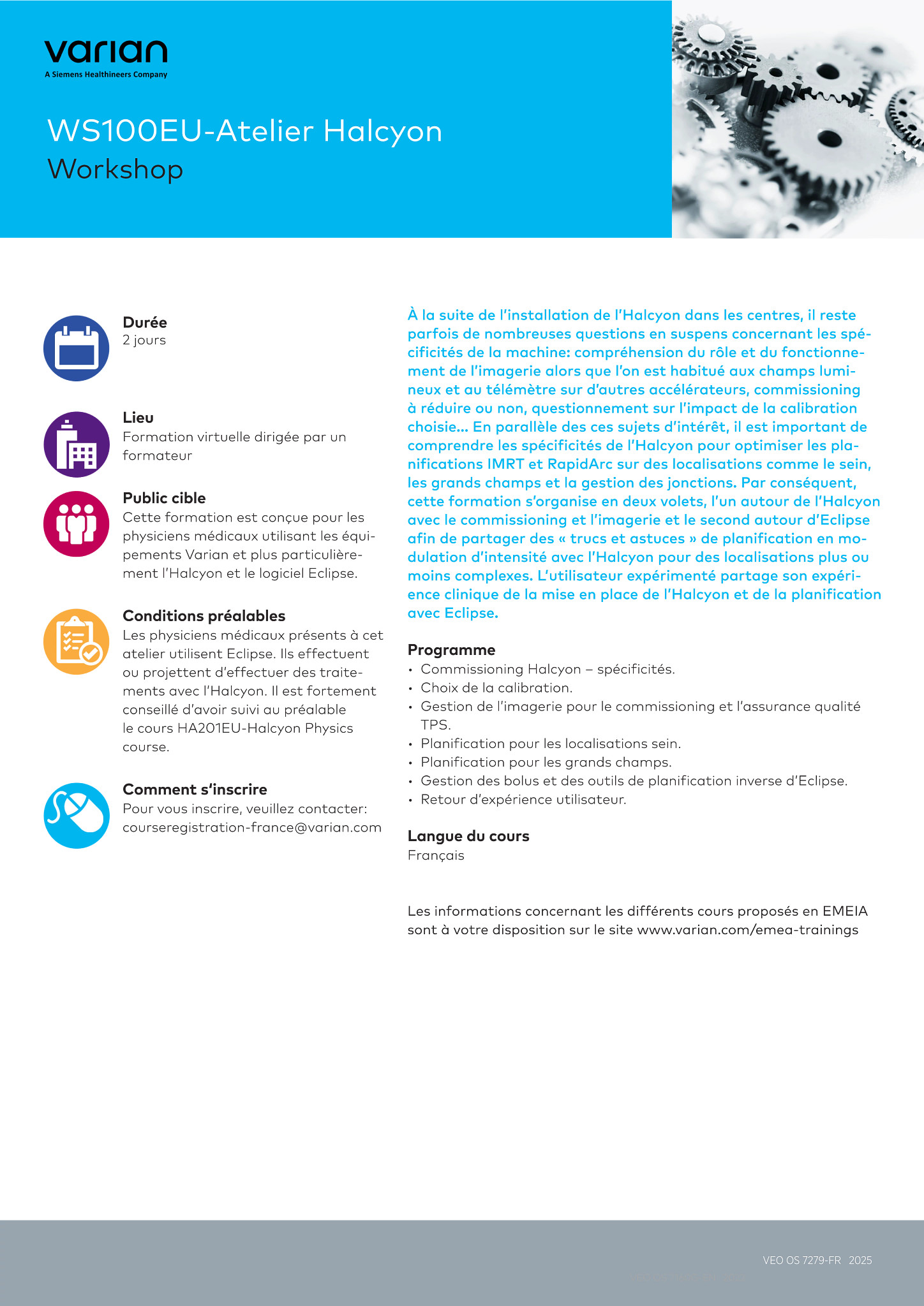 Cette formation est conçue pour les physiciens médicaux utilisant les équipements Varian et plus particulièrement l’Halcyon et le logiciel Eclipse.