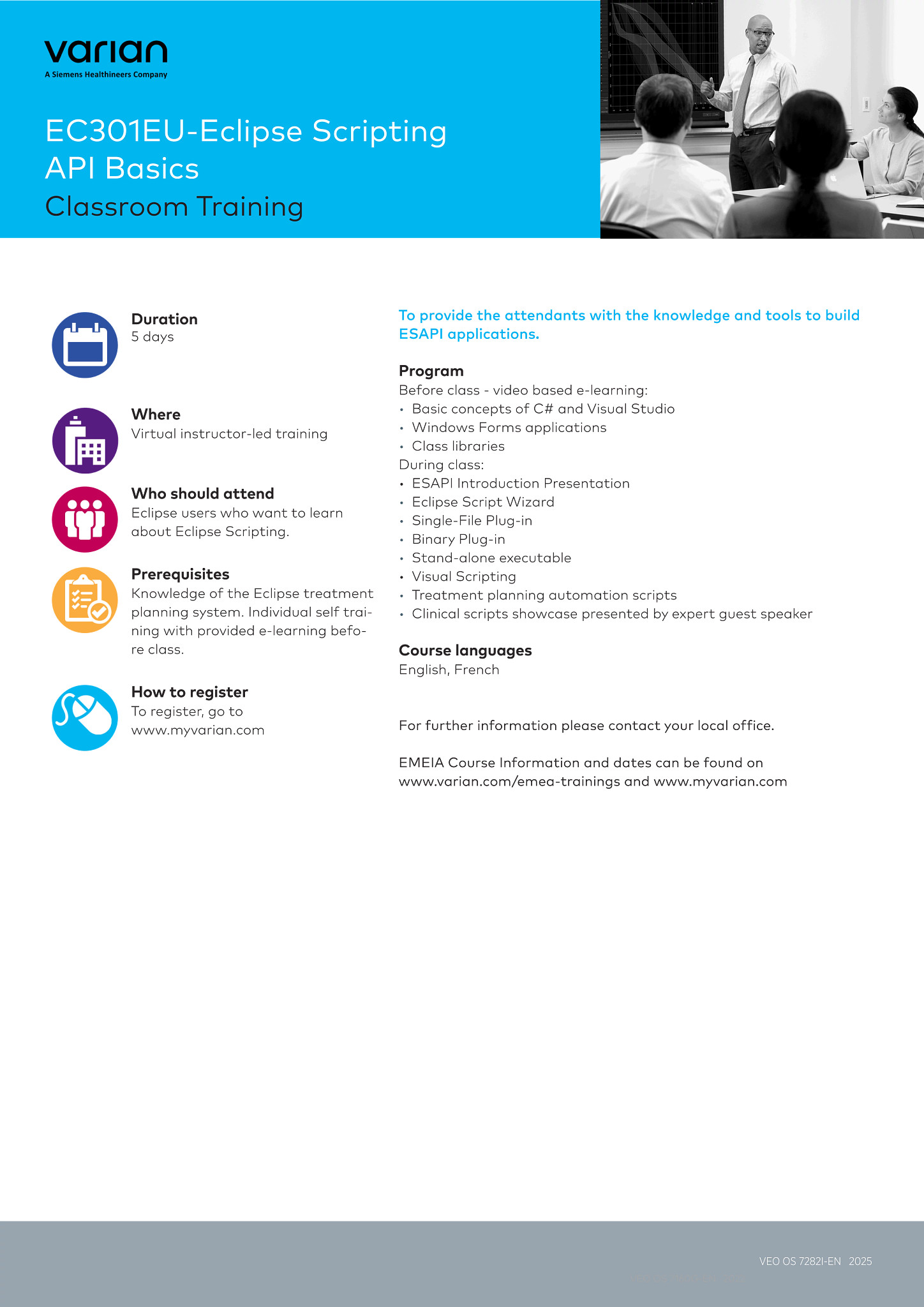 ** Courses will be offered virtual instructor led in CET time zone *** To provide the attendants with the knowledge and tools to build ESAPI applications for research as well as clinical use.