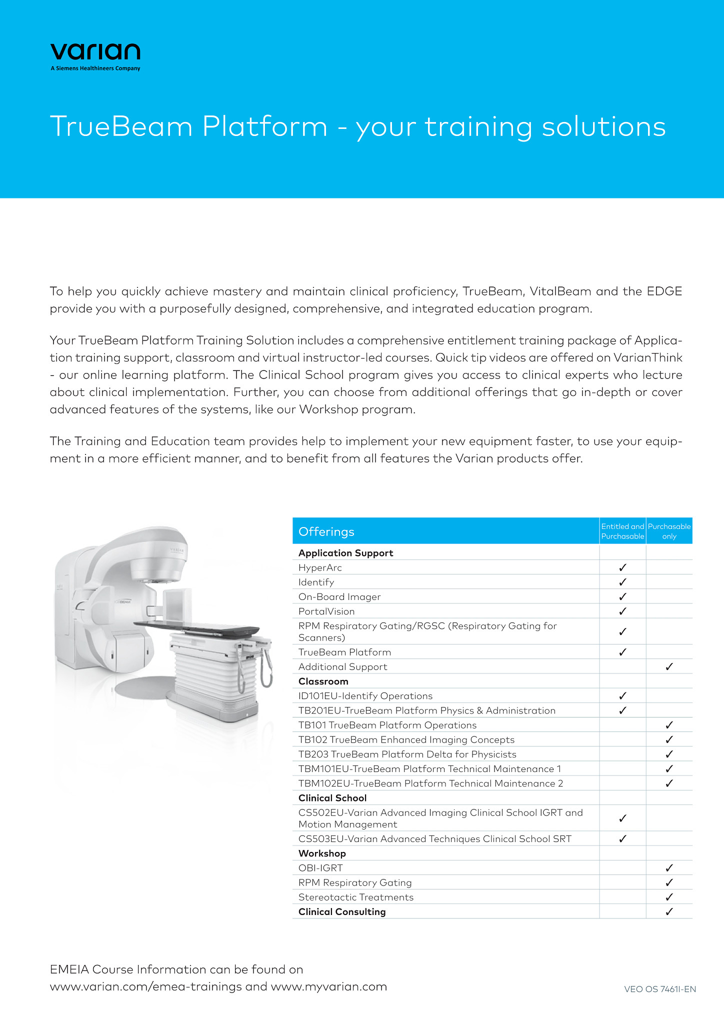 To help you quickly achieve mastery and maintain clinical proficiency, the TrueBeam, VitalBeam and the Edge provide you with a purposefully designed, comprehensive, and integrated education program. See the TrueBeam Platform Training Solution Flyer for more details.