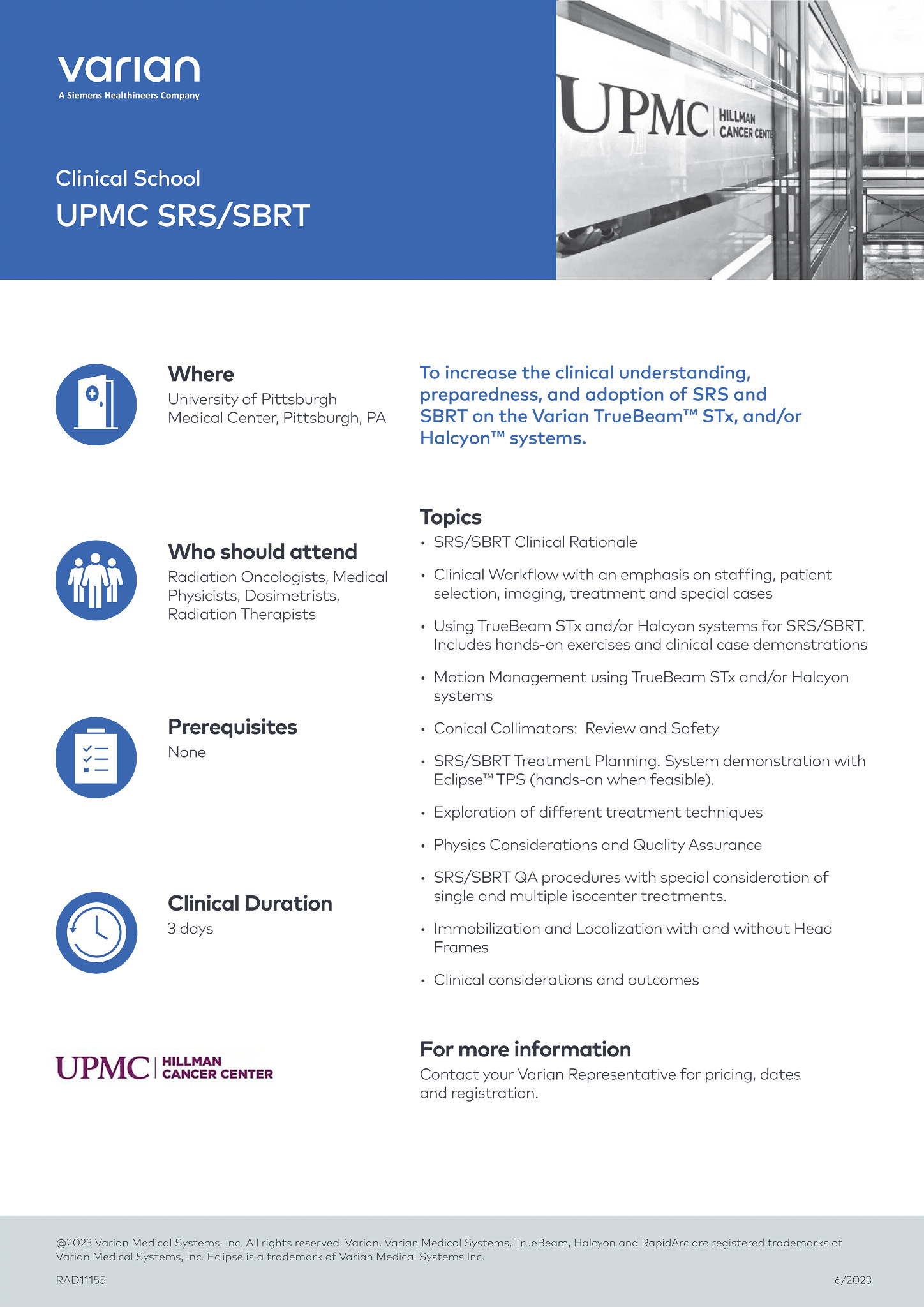 To increase the clinical understanding, preparedness, and adoption of SRS and SBRT on the Varian TrueBeam™ STx, and/or Halcyon™ systems.