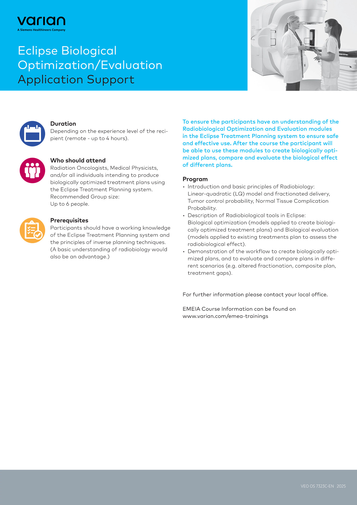 "recommendedFor": "Radiation Oncologists, Medical Physicists, and/or all individuals intending to produce biologically optimized treatment plans using the Eclipse Treatment Planning system.Recommended Group size: Up to 6 people.",