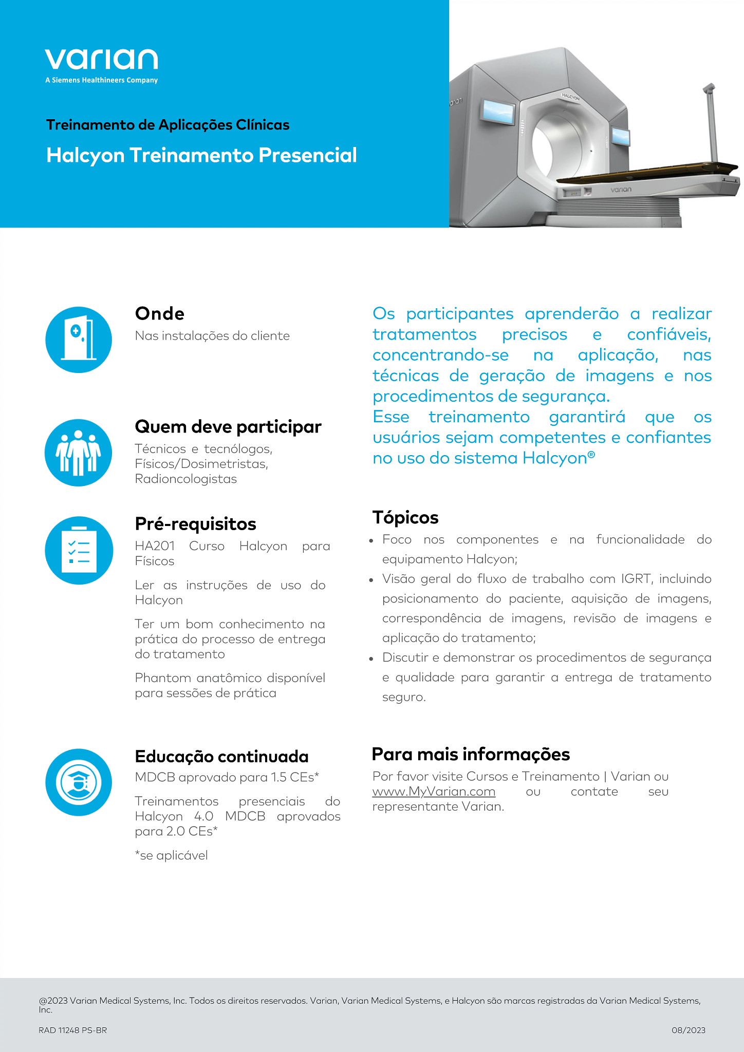 Os participantes aprenderão a realizar tratamentos precisos e confiáveis, concentrando-se na aplicação, nas técnicas de geração de imagens e nos procedimentos de segurança. Esse treinamento garantirá que os usuários sejam competentes e confiantes no uso do sistema Halcyon®.